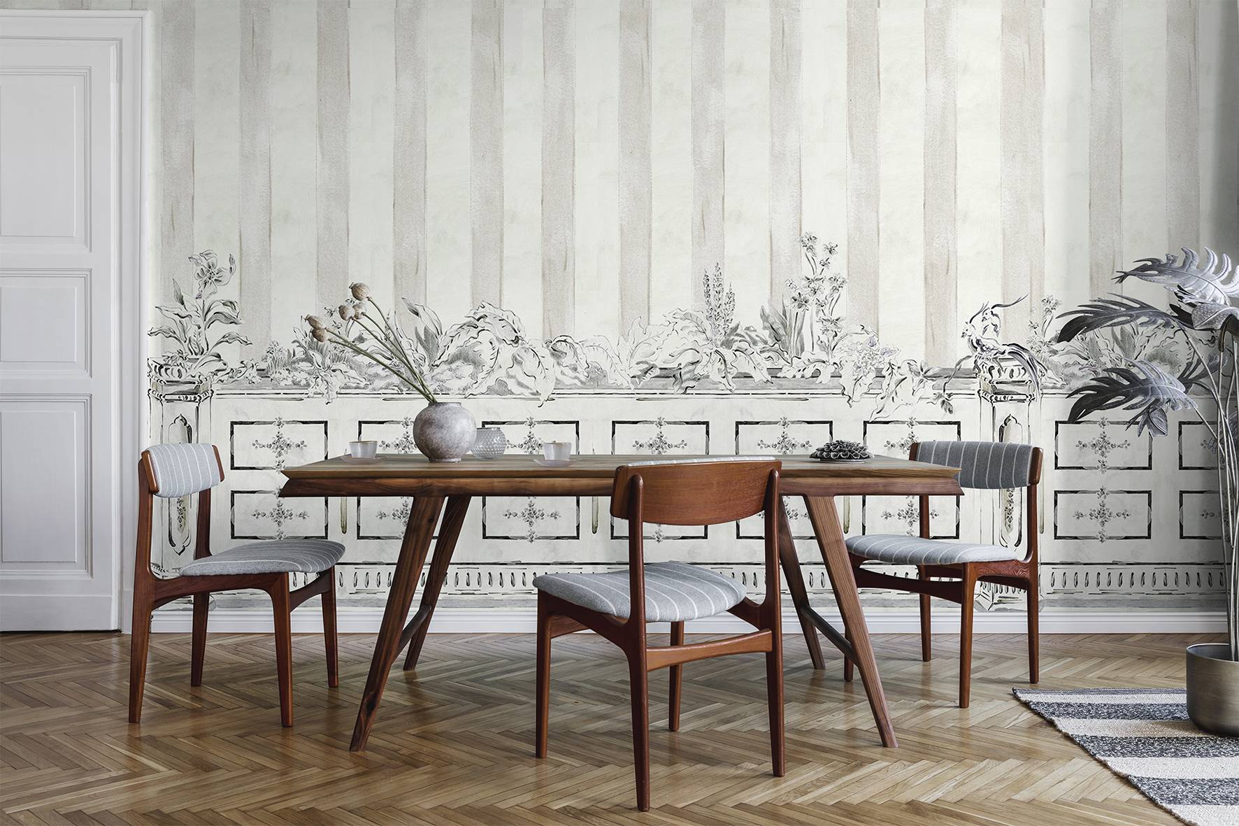 Коллекция флизелиновых обоев Indiano испанского бренда Coordonne создана под впечатлением от индийской культуры, изысканных индийских тканей, красочных праздников. В основе коллекции – изящные узоры пейсли, пышные растительные мотивы, сложные орнаменты, а также классическая полоска. Дизайны с пальмами и другими растительными узорами идеальны для создания атмосферы природы в гостиной, спальне, столовой или коридоре.